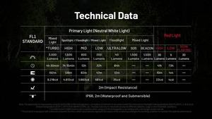 【光源と明るさ調整】 白色メインライト(明るさ5段階 、それぞれスポット・広角・ミックスで点灯可)、赤色補助ライト(明るさ2段階と点滅)